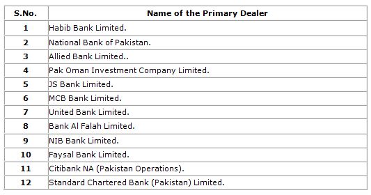 - SBP serves as an agent of Government of Pakistan for managing domestic public debt. SBP is responsible for conducting auctions of marketable government securities (MTBs, PIBs and GIS) and managing certain public debt data. SBP also regulates Primary Dealers of government securities.