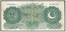 After their initial usage, Pakistan (Monetary System and Reserve Bank) Order, 1947” allowed modification and circulation of Indian notes. These modified notes, issued in Rs. 1, 2, 5, 10 and 100 denominations, contained two inscriptions on the front i.e. "Government of Pakistan" at top and “حکومت پاکستان “at bottom of the white area, generally reserved for viewing watermark