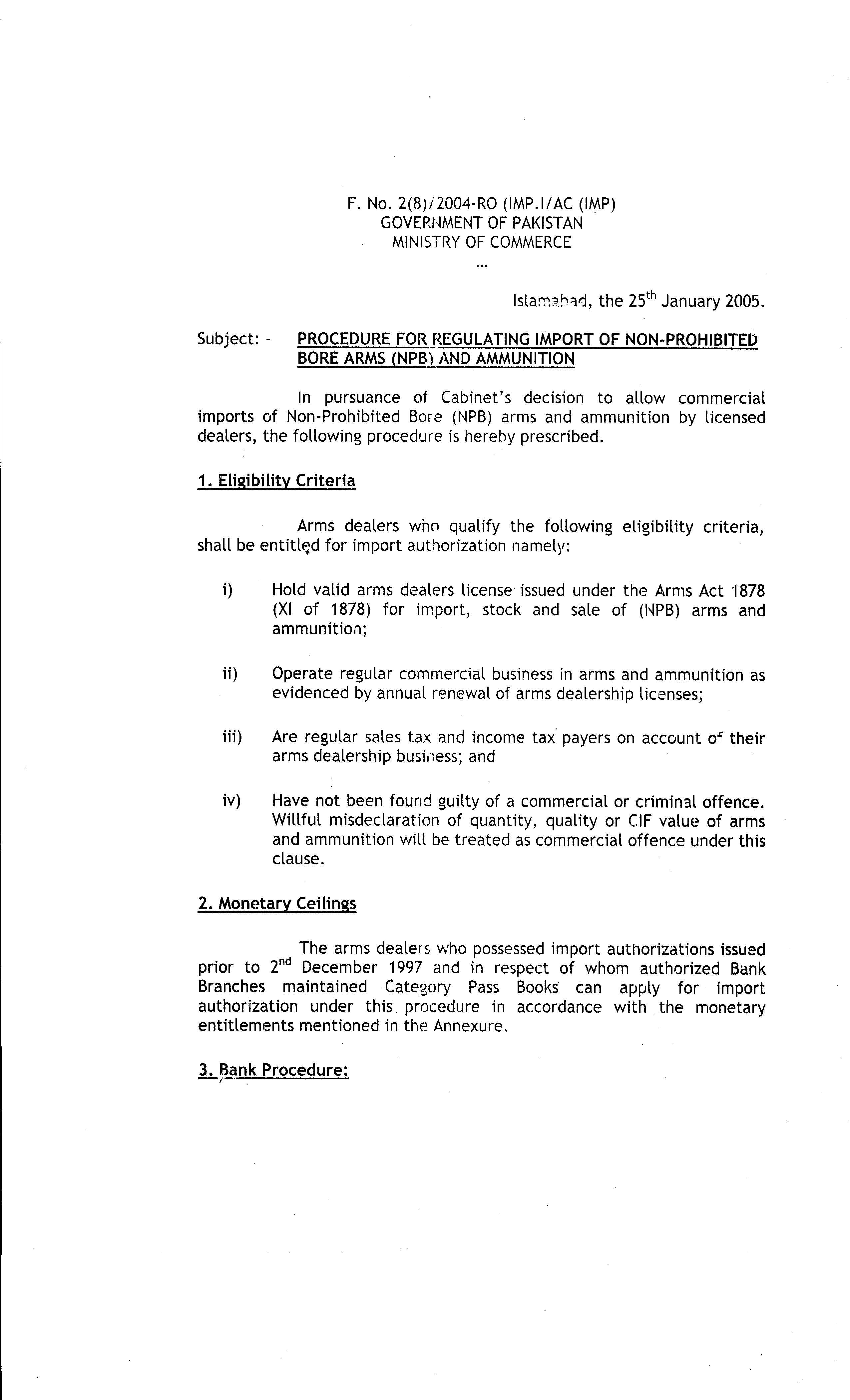FOR REGULATING IMPORT OF NON- PROHIBITED