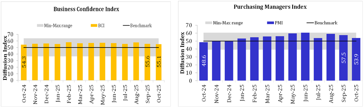 The Business Confidence Survey (BCS) serves as a leading indicator of economic activity, providing timely insights that support short-term economic monitoring and forecasting. It plays a crucial role in monetary policy formulation, given its forward-looking nature and its ability to capture the expectations of key economic agents.
