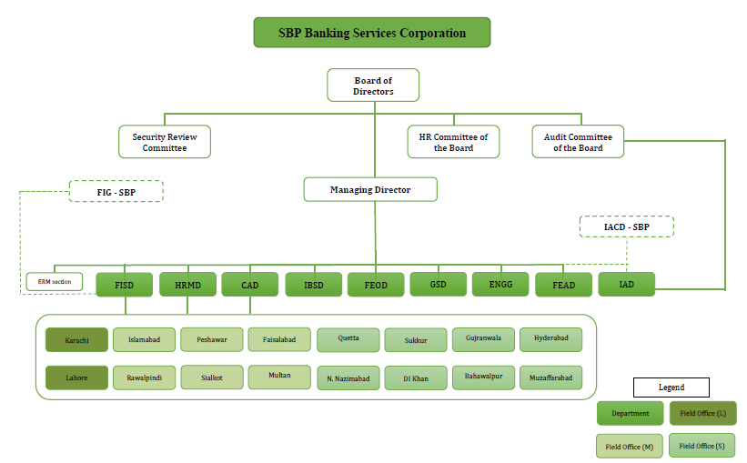 The Managing Director (MD) is the Chief Executive Officer of SBP BSC and controls the affairs of the Bank on behalf of the Board of Directors. The Managing Director has been empowered to conduct business and manage the affairs of the Bank except for the matters that fall, specifically, under the purview of the Board. The Managing Director is assisted by a team of Heads of Departments and Chief Managers as laid out in the Organogram above.