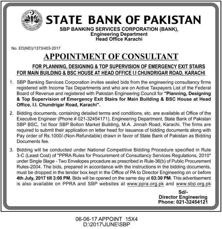 State Bank of Pakistan (SBP) intends to procure